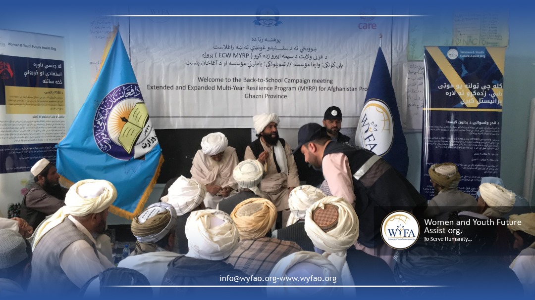 In Ghazni province, WYFAO carried out a "Back to School" campaign aimed at increasing school enrollment and public awareness on the value of education. Conducted in partnership with the Directorate of Education, the campaign mobilized communities and encouraged families to send their children back to school. The main gathering was attended by government education officials and WYFAO representatives. During the program, school stationery was gifted to students from low-income families to support their educational needs. The activity reflected a collaborative effort to reduce barriers to education and promote learning for all children in Ghazni.